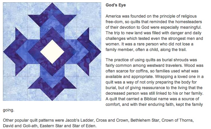 The “history of quilts” is called the “herstory of quilts” by a Texas Tech University writer, mainly because women were the makers and keepers of the artful bedding.  Author and quilter Barbara Brackman uses the history of fabric, patterns and dyes to date quilts.  Check out her blog, “Material Culture”.