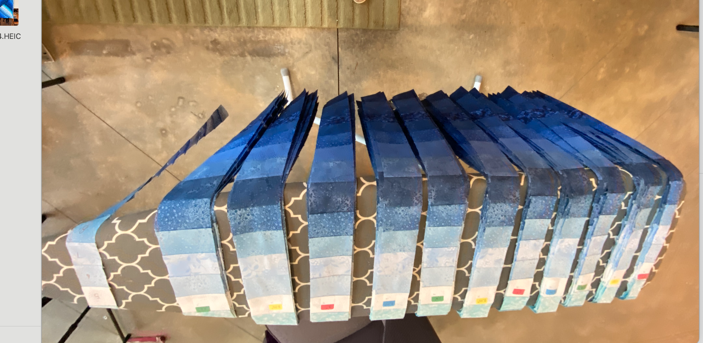 Top Pic – Organizing the bargello strips with color coding.