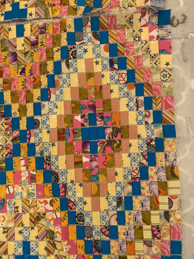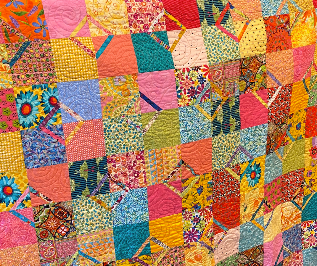 Cindy – “Hmmm, let me count them: English Paper Piecing, Octagon Postage Stamp, Orange Peel Quilt . . . two variations, Large Octagon Quilt, Doggy Quilt, Christmas Quilt, Halloween – Dia de Los Muertos. There are many more I have on a list. . . .”