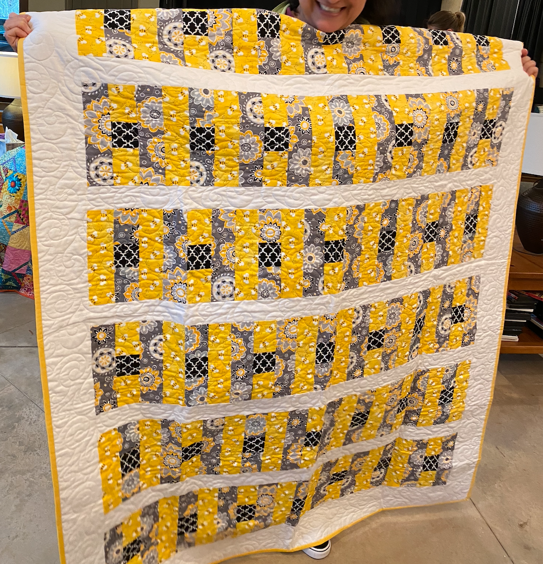 Cindy – “I love all the colors, prints and fabric, plus the unlimied patterns and combinations one can do to make a unique, one of a kind quilt,. To me, quilting is music, endless creativity.”