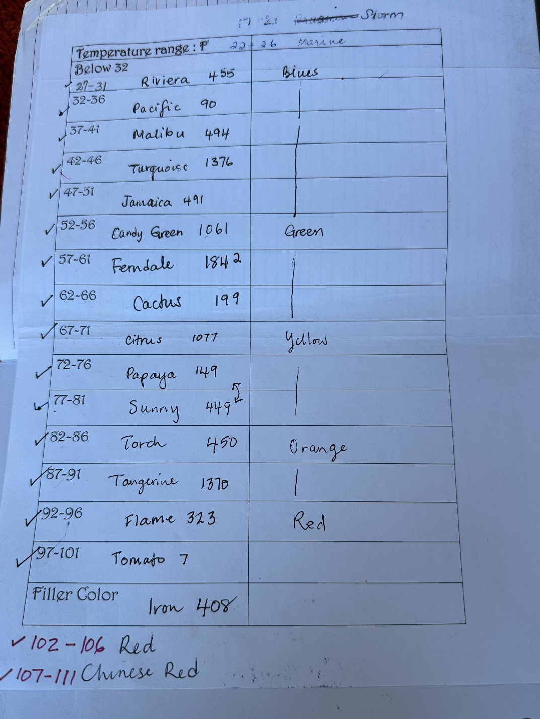 Top Pic – Organizing the bargello strips with color coding.